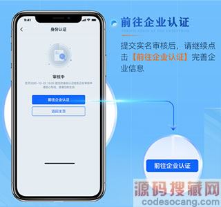 3、提交实名审核后,请继续点击[前往企业认证】完善企业信息。