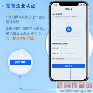 4、请拍摄或者是从相册上传企业营业执照,根据提示完成企业信息,确认信息无误后点击下方【提交审核按钮】。