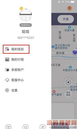 1、首先进入叮嗒出行app,在个人中心中点击我的钱包;
