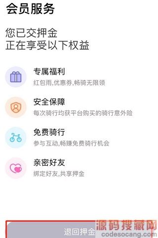 3、点击押金,选择退回押金;