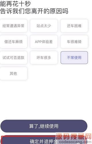 4、随便选择一个原因,点击确定并退回押金;