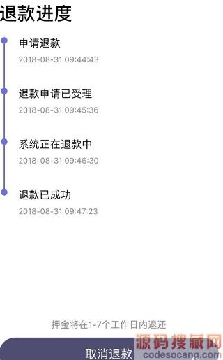 5、申请退还押金后,可在“我的钱包”->“押金”界面查看退款进度。也可以取消退款继续使用叮嗒出行。