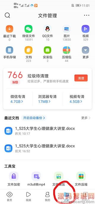 1、打开手机QQ浏览器2022最新版本,点击右下方的文件。
