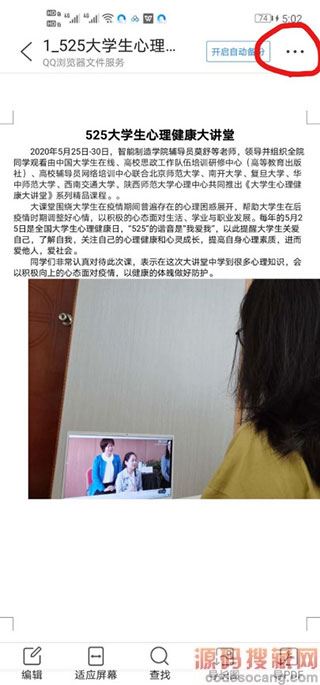 4、打开你需要编辑的文件后找到右上角的省略号,点击省略号进入下一步。
