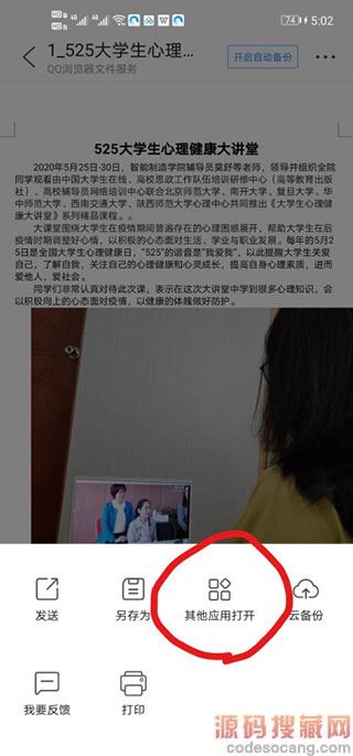 5、点击省略号后会出现以下情景,选择用其他应用打开。