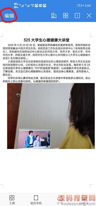 7、进入WPS后,你需要编辑的文件会转移到WPS中,然后你需要找到左上角的编辑,点击编辑后你就进入到WPS的编辑模式。