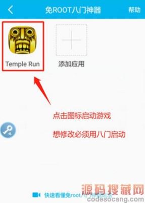 2、如图所示,添加游戏“神庙逃亡”之后,点击图标启动游戏。记住,一定要在八门内使用修改器启动才能生效!