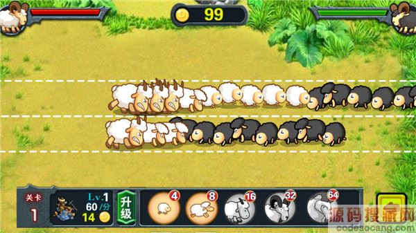 4、获得胜利可以获得金币来升级,升级将更轻松的招募更多山羊。