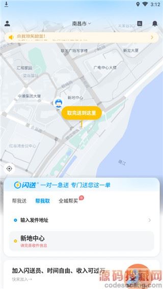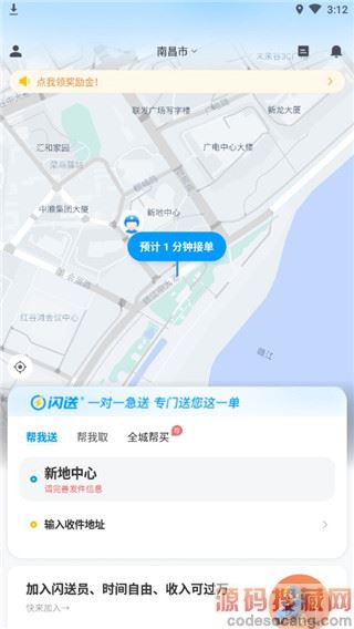 1、在本站下载并安装闪送同城快递APP,进入软件,将坐标放置在自己所在的地方,即可上门取货送出