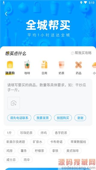 3、点击全城帮买,填写自己想买的东西,并提交即可等待快递小哥送货上门