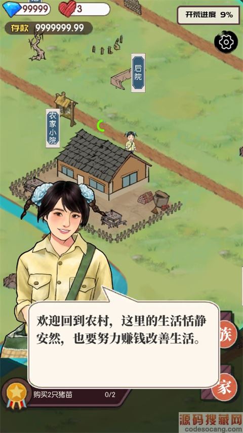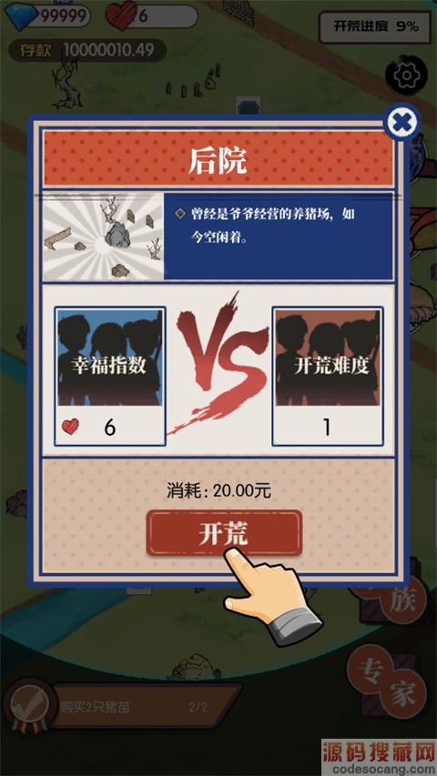 4、这里点击后院,曾经是爷爷经营的养猪场,如今空闲着也是闲着,还不如开荒,找了点击开荒;