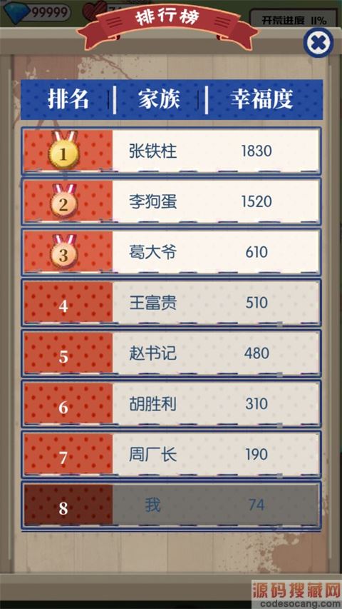 7、点击家族,这里可以看到家族排行榜,要想排在前面就要好好努力;
