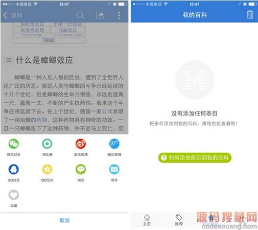 另外,MBA智库百科还贴心的为用户设计了分享与收藏按钮,用户仅需在想要分享或收藏的名词解释页面点击右上角“点点点”的按钮,便会弹出分享与收藏的页面。从而简单方便的把自己了解的名词分享给朋友,或者需要用到的同事;也可以收藏到“我的百科”中方便日后的使用与学习。