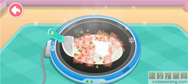 6、随后滑动屏幕中的铲子,对其翻炒,即可获得酸奶卷。