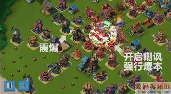 (4)爆本:布利特开启全体嘲讽,机器小怪协助,妹妹清理掉大本上方的关键防御武器,清理出安全区,直接爆本。