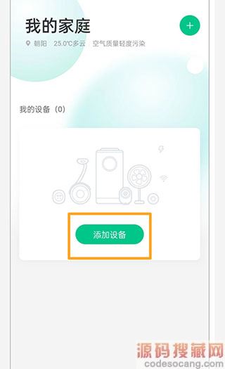 1、在本站下载安装好360智慧生活app官方版最新版本软件后,进入首页,点击“添加设备”。