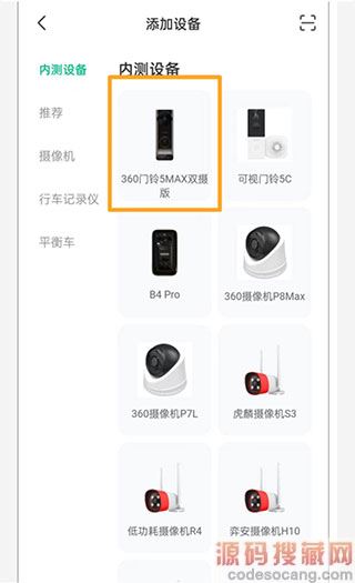 2、选择“内测设备-360门铃5MAX双摄版”。