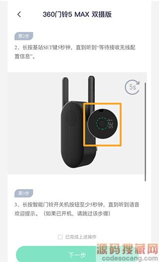 3、长按基站SET键,听到“等待接受无线配置信息”提示后,进行下一步。