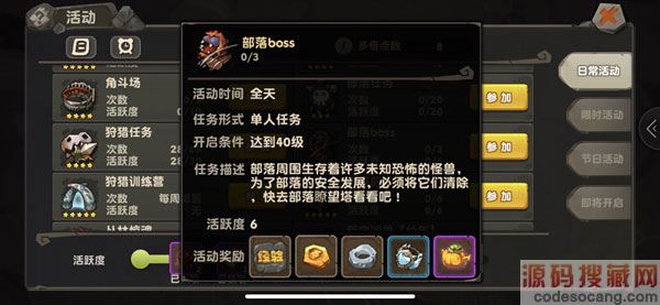 一系列的部落任务都可以提供大量的经验值,这些任务均为单人任务,且为半挂机活动,所以一个人也可以轻松刷完,其中部落任务和酋长任务每天可以跑20轮,部落BOSS可挑战3次,刷完这些应该可以升级不少啦!