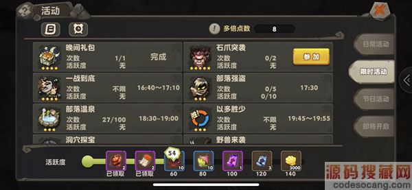 咕噜奇缘答题、失落的碎片、挑战蛮荒凶兽等任务,经验值还不够时,建议去跑一遍,答题注意不要答错,答错后的经验奖励会大大降低,另外还有许多限时活动,比如石爪突袭、部落强盗、泡温泉等等,都有大量经验。其中泡温泉建议扎堆泡最好,因为人越多,获得的经验值就越高!