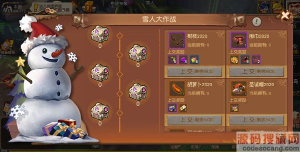 参与“堆雪人”,与全服酋长一起上交节日限定道具,共同赢取三个档位的全员大奖。