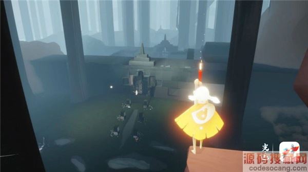 顺着小溪往前,玩家将走入密林遗迹。拦腰折断的巨树倒在地上,被蚕食成空心的树干以及破碎的石塔半埋在水中,等待旅人用蜡烛点亮重启装置。