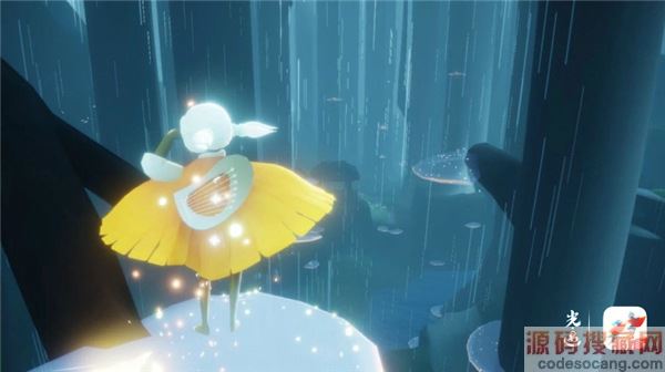 雨林常年累月下着淅淅沥沥的雨,而冰凉的雨水会持续消耗旅人的能量,只有靠近光源才能维持心火。光之后裔们将在这里接受来自雨水的挑战,接触到一些神奇的发光生物,并初步了解到云中王国潜在的危险。