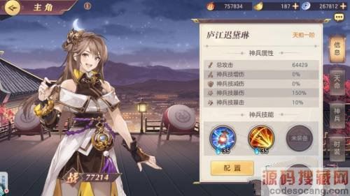 2、主角的培养可以提升战力,主角培养分为天命、神兵、时装。
