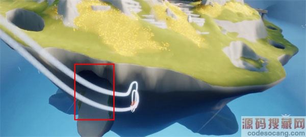 2、我们需要从主岛下面的洞口进去,这样才能够进入通道然后被风吹出上面的洞口,小金人风洞口对应的通道入口是主岛正面-左下方的那个。