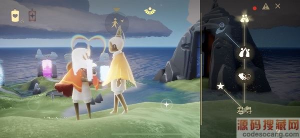 找到石碑前的人影可以打开先祖商店。在先祖商店中我们可以用蜡烛解锁姿势或祝福,用爱心购买新的装扮,还可以购买乐器与好友合奏。