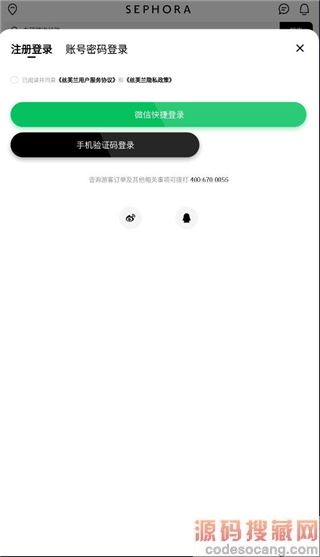 1、下载安装好丝芙兰app,通过手机账号登入或是微信、qq、微博。