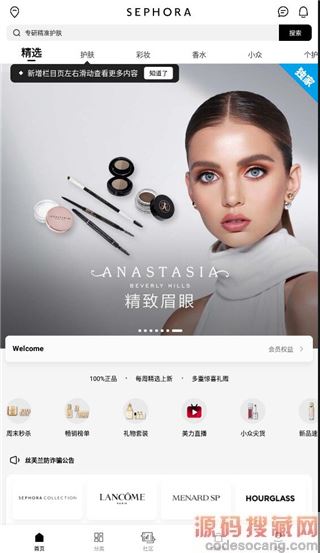 3、在首页中,有着精选、护肤、彩妆、香水、小众、个护、男士等系列。