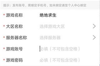3、之后就是填写账号的详细信息了,包括游戏的大区、游戏的账号、密码等详细信息,玩家还可以在下方的描述中把游戏的亮点全部写上去,包括LOL有多少英雄、皮肤、段位;DNF拥有高强化高增幅的装备等,都是吸引雇主们租赁你账号的吸引力。