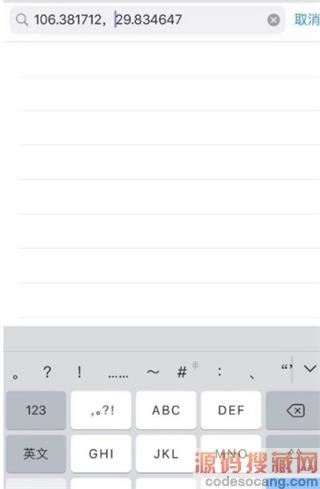 3、点击搜索,在搜索栏中输入经纬度,以逗号隔开。