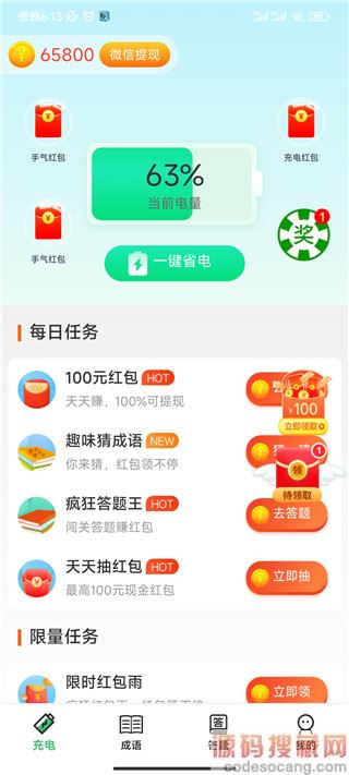 1、下载进入天天充电王app,在这里你不仅可以查看你手机的当前电量,还可以获得大量的红包;