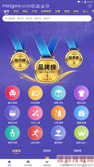 1、进入软件【首页】之后,我们就能看到一些热门的榜单和分类,如品牌榜、知识榜、投票榜等。