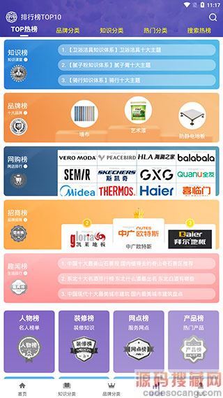 4、【排行榜】页面则为我们提供了各种榜单数据,如知识榜、品牌榜、网购榜、招商榜、趣闻榜等。