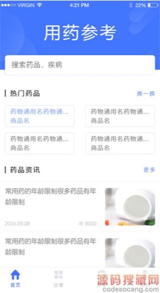 1、在本站下载并安装用用药参考app官方版,进入首页可以查看热门药品