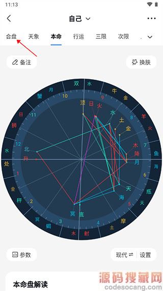 3、点击你的档案进入,选择合盘,进入合盘界面后再选择另一个档案。