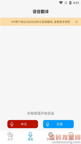 6、选择语音,可以长按对应的语言按钮说话进行翻译;