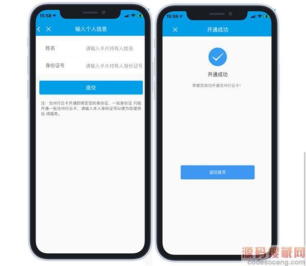 2、第二步:登录成功后,点击APP下方【扫码乘车】,输入姓名+身份证号,完成实名认证并【提交】,提示【开通成功】。