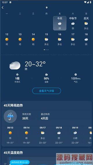 2、不仅可以看到最近几天天气状况,还可以看到45天的天气
