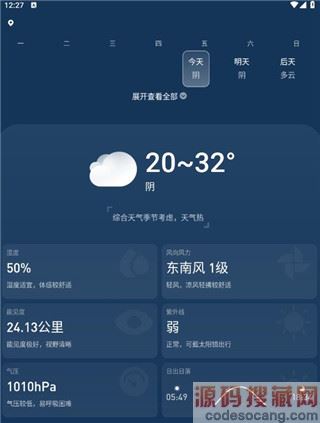 3、还有每日天气详细情况,包括温度、湿度、紫外线、风力等信息