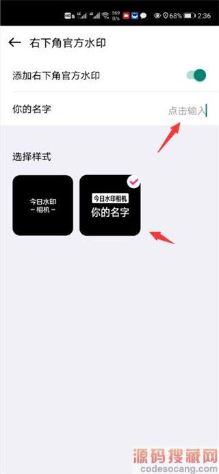 6、在“选择样式”中选择“你的名字”并手动输入即可自定义水印。