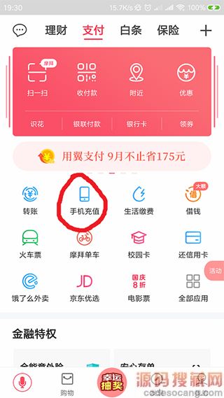 1、打开翼支付最新版,点击首页的“手机充值“。