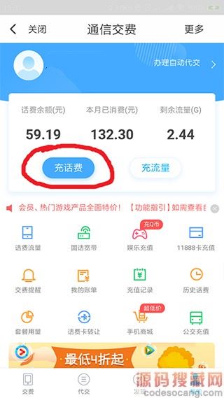 2、在“手机充值”页面点击“充话费”。