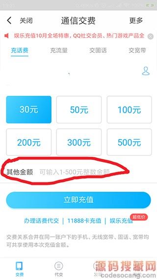 3、在“充话费”页面,“其他金额”处输入想要充值的金额(可以在首页我的账户余额中确认返利及余额),然后点击“立即充值”。
