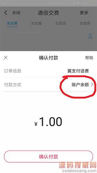 4、在确认付款页面,选择用账户余额付款(返利体现在余额中),然后点击“确认付款”。