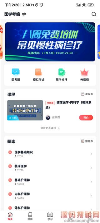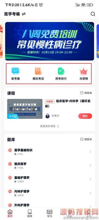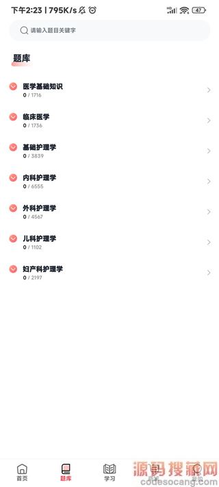 7、选择题库进入,这里依旧是题库,但是可以在顶端搜索框搜索想要练习的题目,输入关键词即可;
