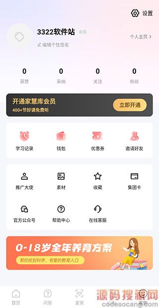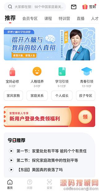1、进入软件【首页】之后,我们可以在这里看到四个特色板块,它们分别是宝妈必修、人格培养、学习引领、青春引领。